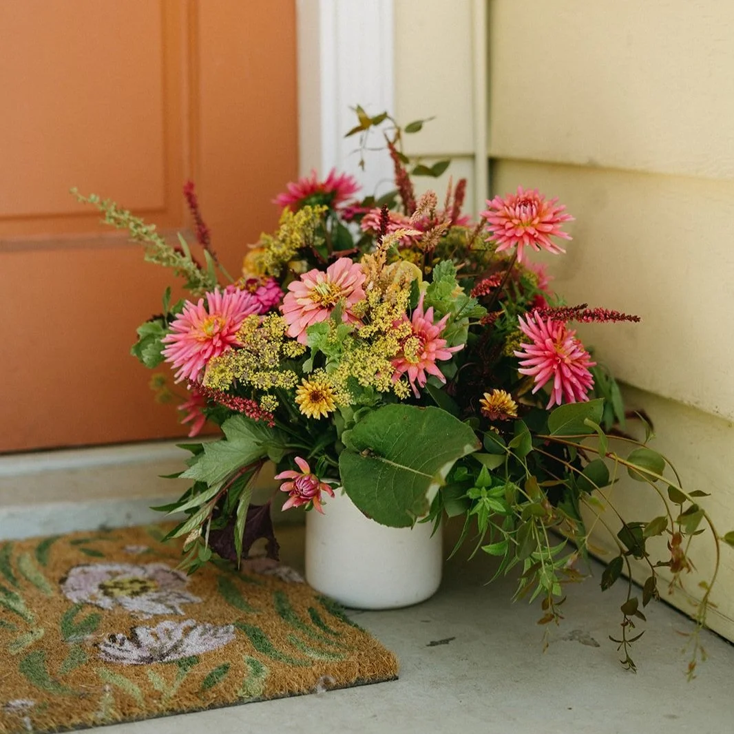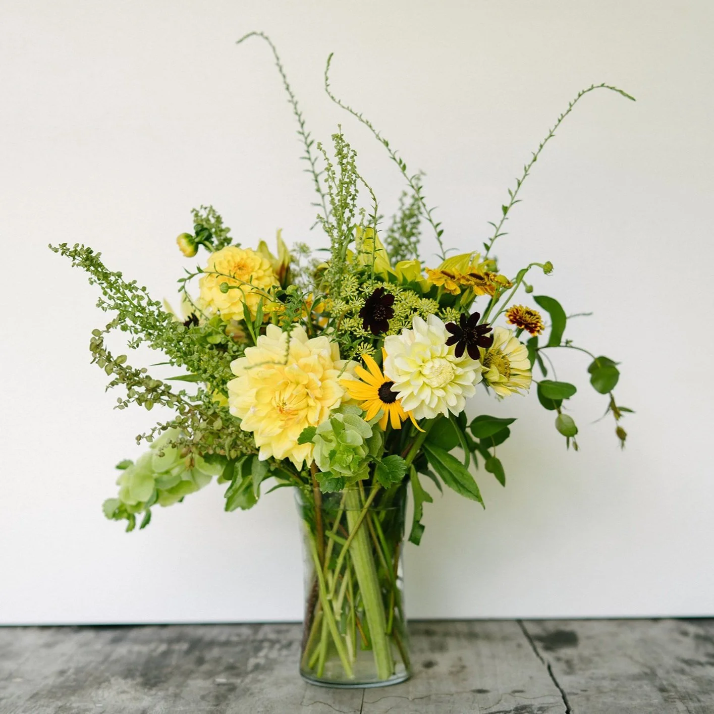 We have a variety of bouquet subscriptions to choose from. Many of them are seasonal with 5 weeks of locally grown, seasonal bouquets! We also offer a 10-month subscription option where you would receive one bouquet per month plus one Winter wreath. The types and varieties of flowers vary depending on the season. There are two tiers of subscriptions to choose from the market (pictured in a clear vase) and the artisan (pictured in a white vase). Market bouquets are smaller and simpler. Artisan bouquets are fuller and more intricately designed.